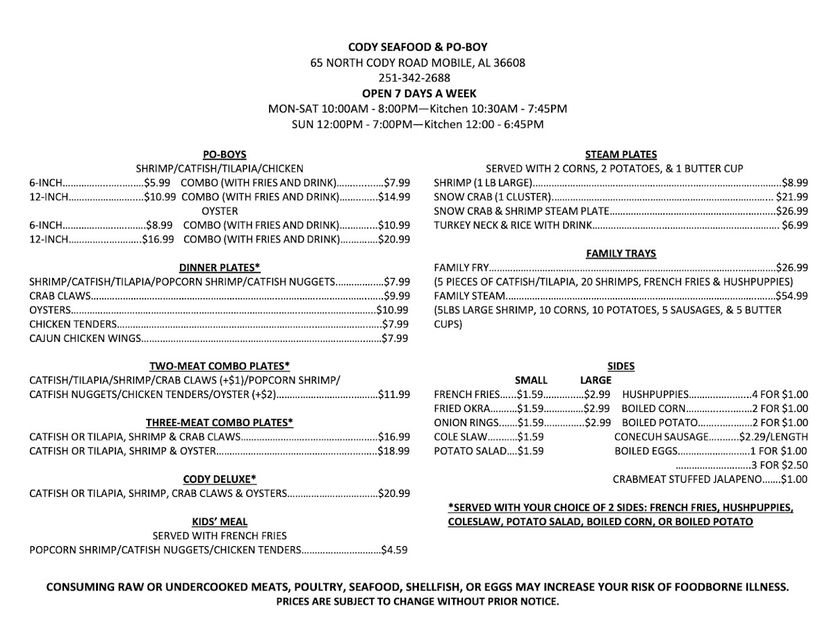 Cody Seafood: Fresh Coastal Flavors in Mobile, AL